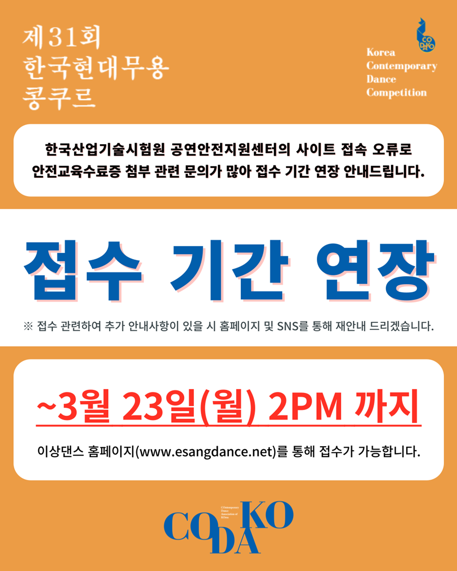 · 제31회 한국현대무용 콩쿠르 - 접수 기간 연장